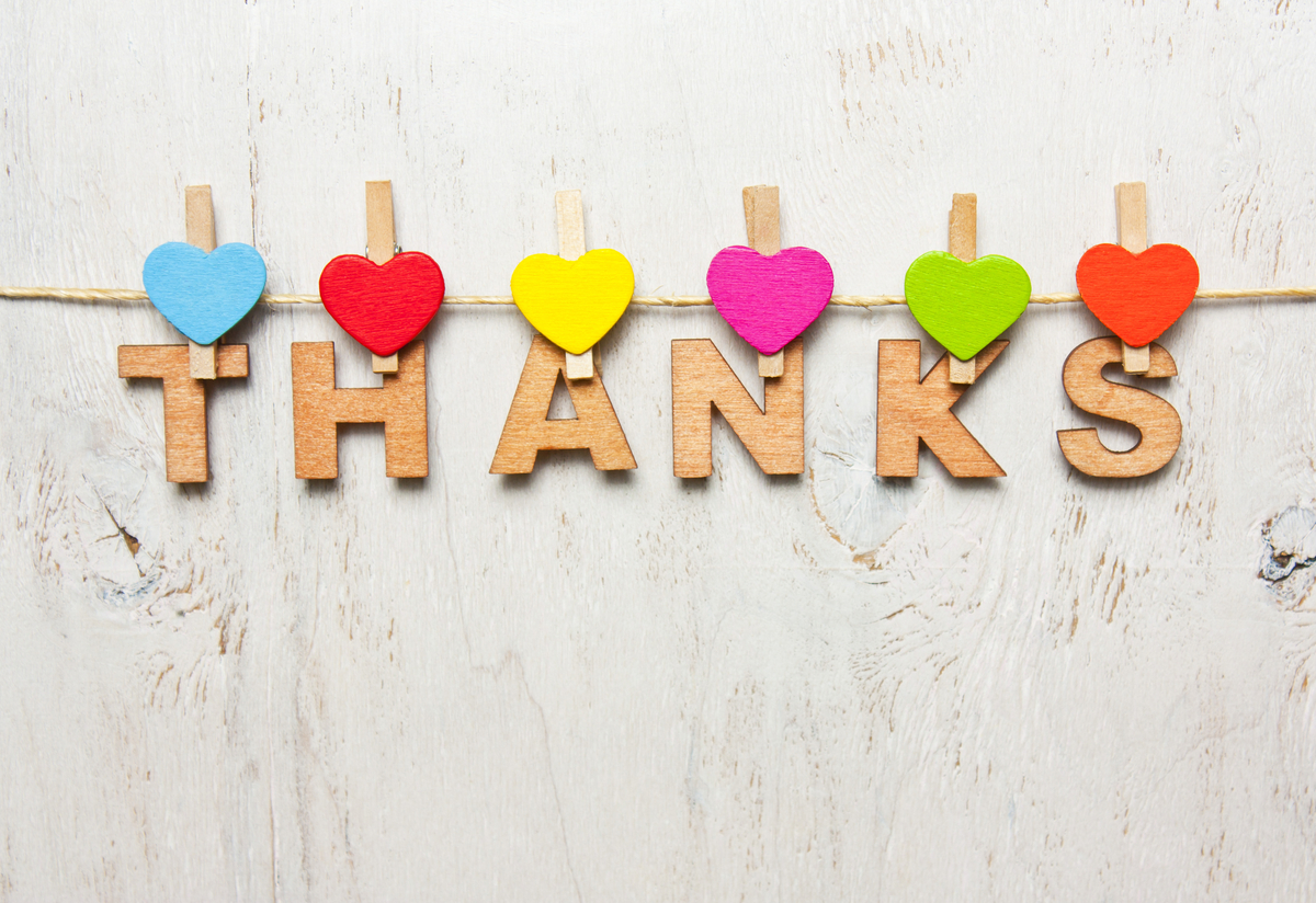 Word of thanks from wooden letters on a white background