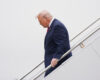 President Donald Trump steps off Air Force One, Saturday, March 7, 2026, at Dover Air Force Base, Del. (AP Photo/Mark Schiefelbein)